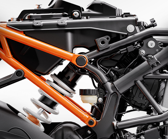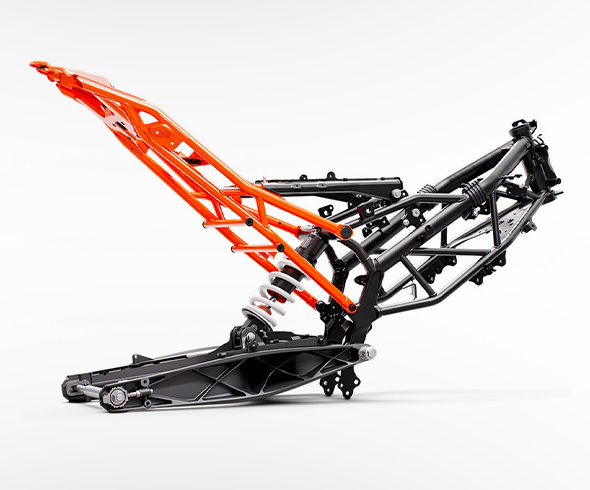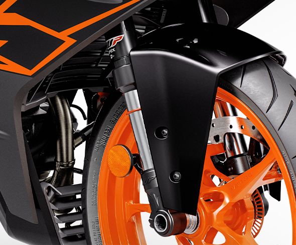 Sistem suspensi menggunakan fork terbalik (USD) WP Apex 43mm dan monoshock WP Apex boleh laras 10-tetapan. Sistem brek cakera tunggal 320mm dengan kaliper radial di depan dan cakera tunggal 230mm dengan kaliper apung di belakang serta dilengkapi Sistem Brek Anti-Kunci (ABS).