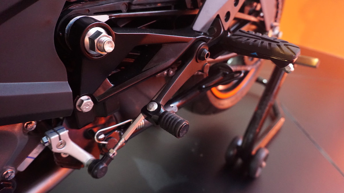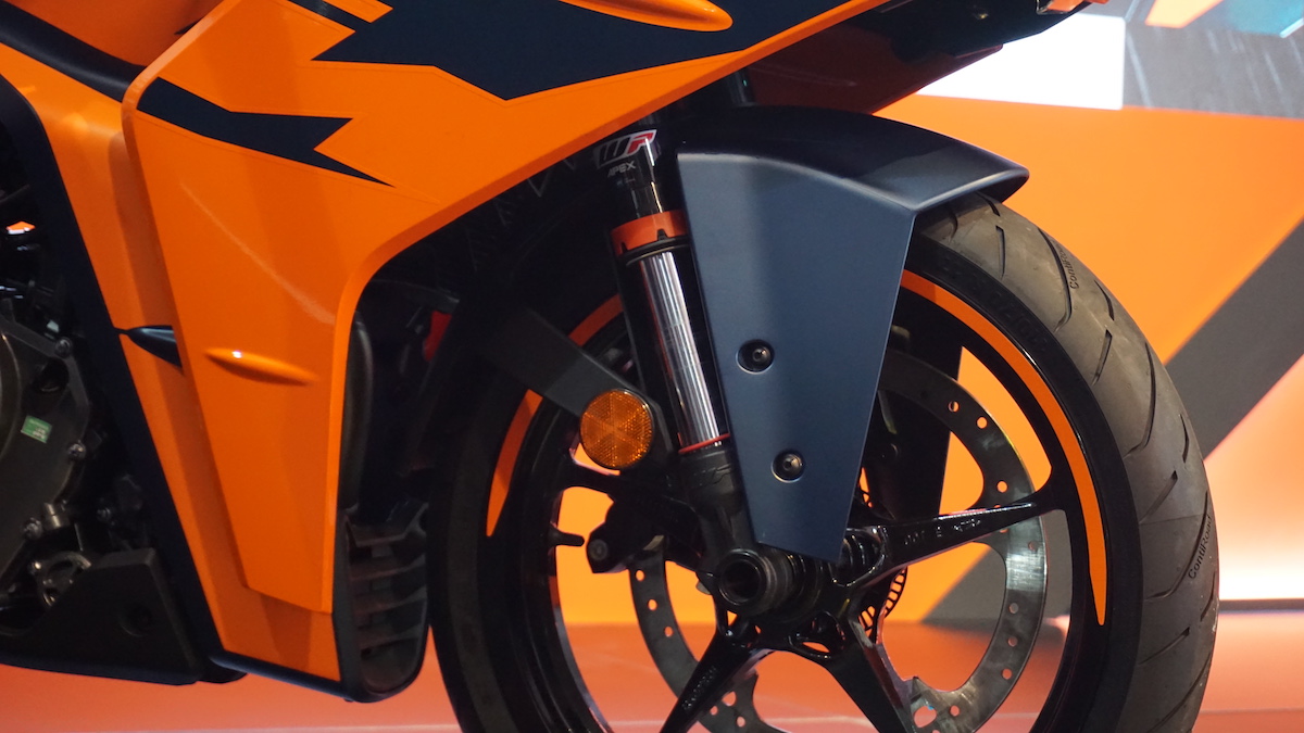 - Sistem suspensi membabitkan fork terbalik (USD) WP Apex 43mm dan penyerap hentak tunggal WP Apex di belakang, kedua-duanya boleh laras penuh.