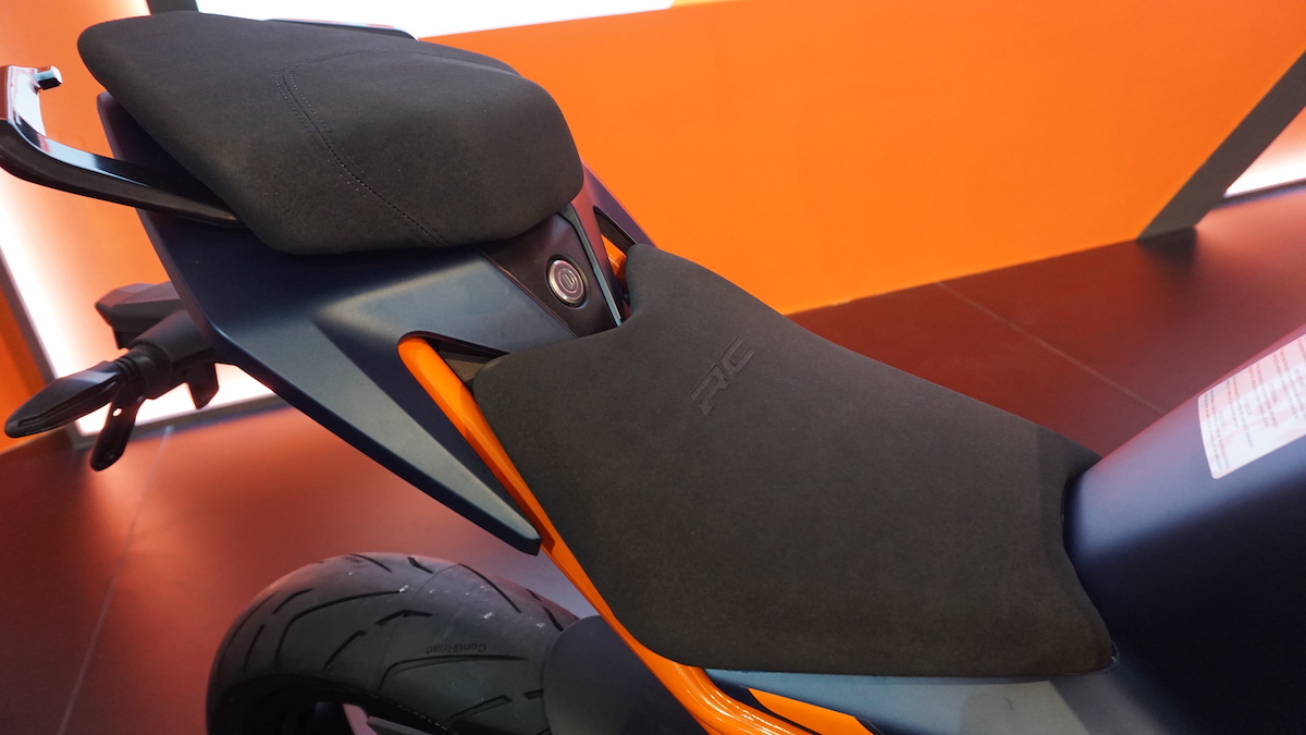 - Pelana penungang dan pembonceng jenis terpisah ditambah ketebalan span dan dibalut menggunakan material alcantara. Ada cop RC untuk tempat duduk penunggang,
