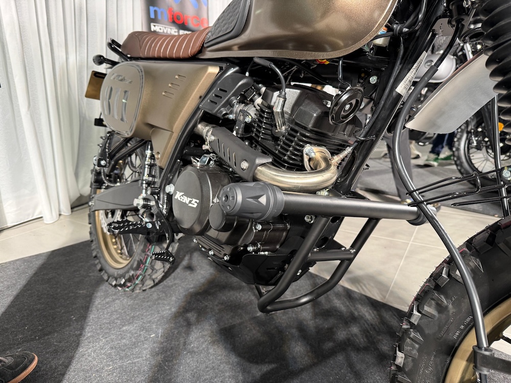 Rekaan scrambler turut diserlahkan menerusi penggunaan ekzos gaya scrambler, bar pelindung serta pelindung tangki yang meningkatkan karakter lasak motosikal ini.