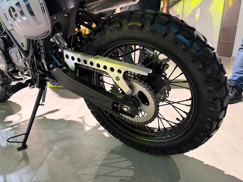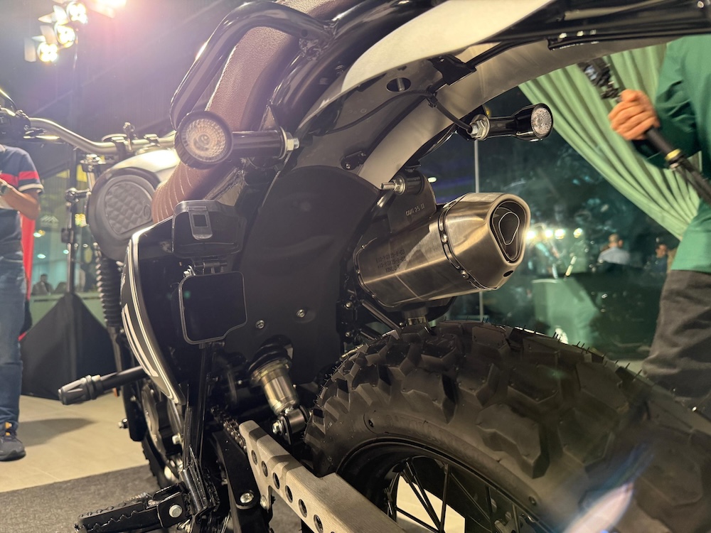Rekaan scrambler turut diserlahkan menerusi penggunaan ekzos gaya scrambler, bar pelindung serta pelindung tangki yang meningkatkan karakter lasak motosikal ini.
