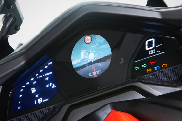 Instrumen meter jenis digital LED berwarna, dibahagikan kepada tiga zon untuk paparan multi-info. Skuter ini menggunakan sistem penghidup tanpa kunci (keyless) berserta suis penghidup yang juga digunakan untuk membuka pelana dan tangki petrol.