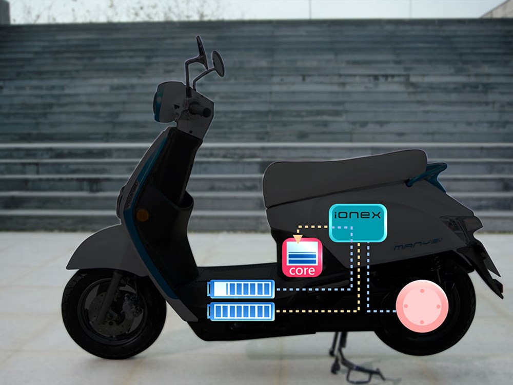 Kelebihan yang dipertaruhkan sistem Ionex ialah bateri boleh tanggal dan ringan. Skuter pertama dipamerkan Kymco daripada barisan Ionex dilengkapi dua bateri boleh tanggal di bawah lantai kaki penunggang. Kemudian, dengan menekan satu butang, ruang bateri akan terbuka dan bateri boleh dicabut untuk di cas.