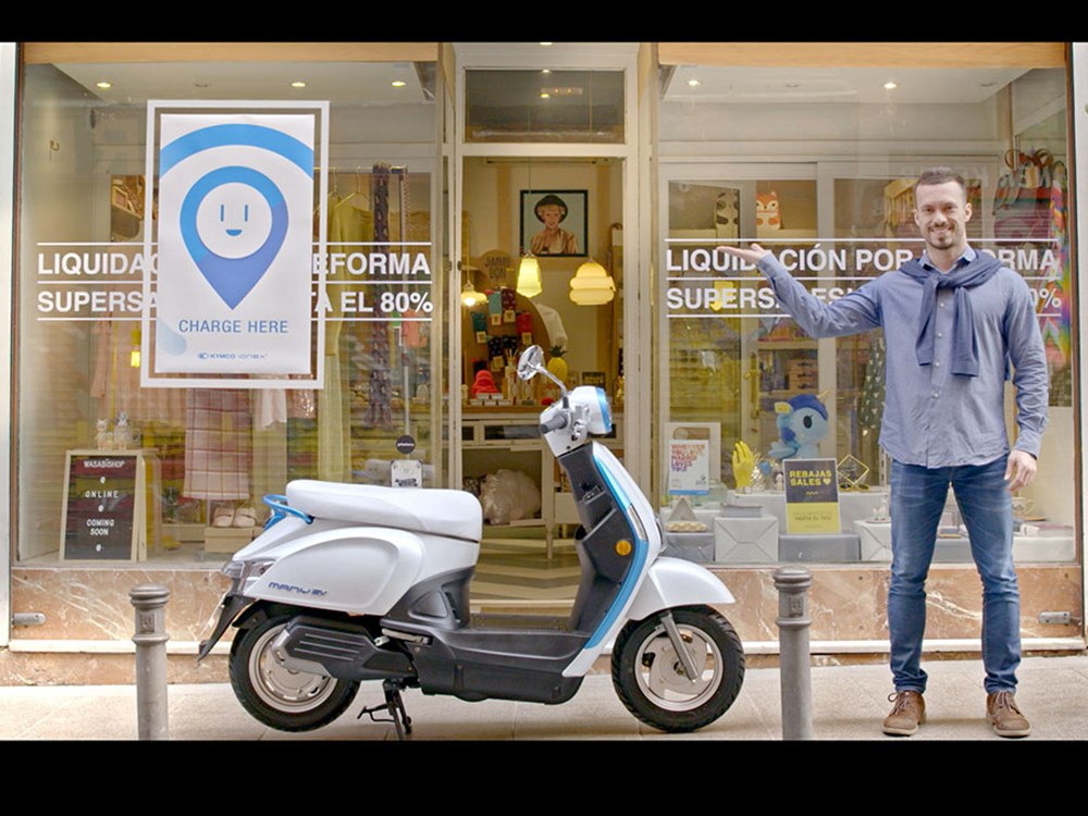 Situasi dibayangkan Kymco, seorang penunggang Ionix yang sedang dalam perjalanan menuju bandar akan meninggalkan bateri untuk dicas di sebuah kafe. Dia kemudian meneruskan perjalanan ke bandar sebelum kembali semula mengambil bateri yang siap dicas di kafe tadi lalu pulang ke rumah. Agak menarik bukan?