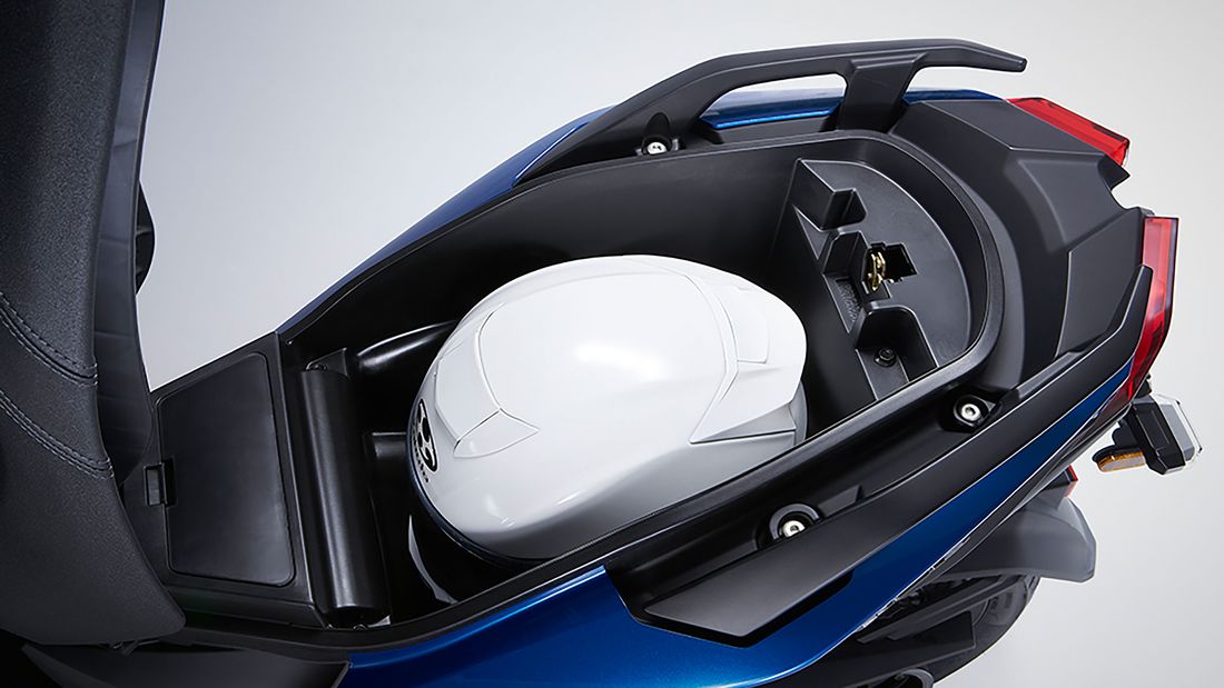 - Ruang simpanan bawah pelana mampu memuatkan sebuah helmet muka penuh.