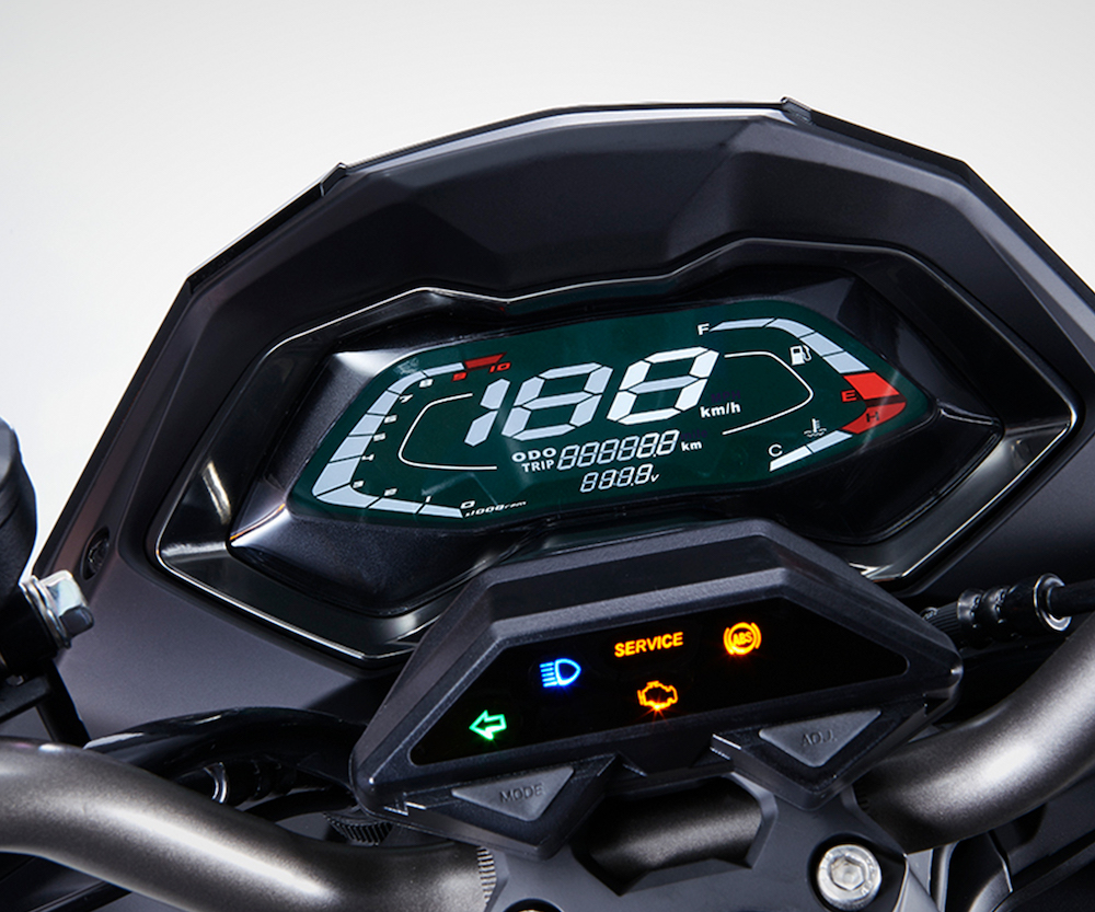 - Menggunakan lampu LED penuh, panel meter digital LCD, slot pengecas USB, tetapi tiada sistem penghidup tanpa kunci.