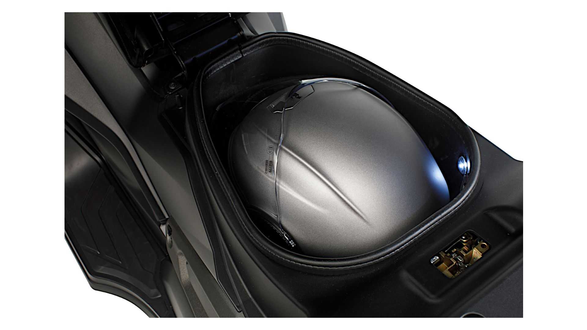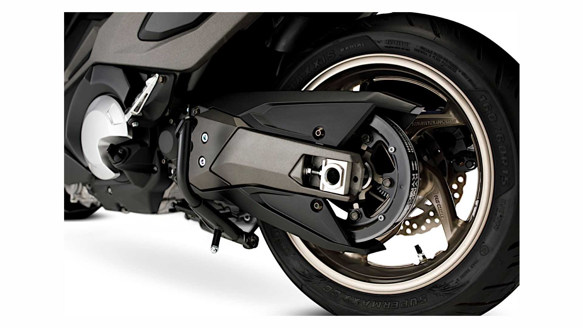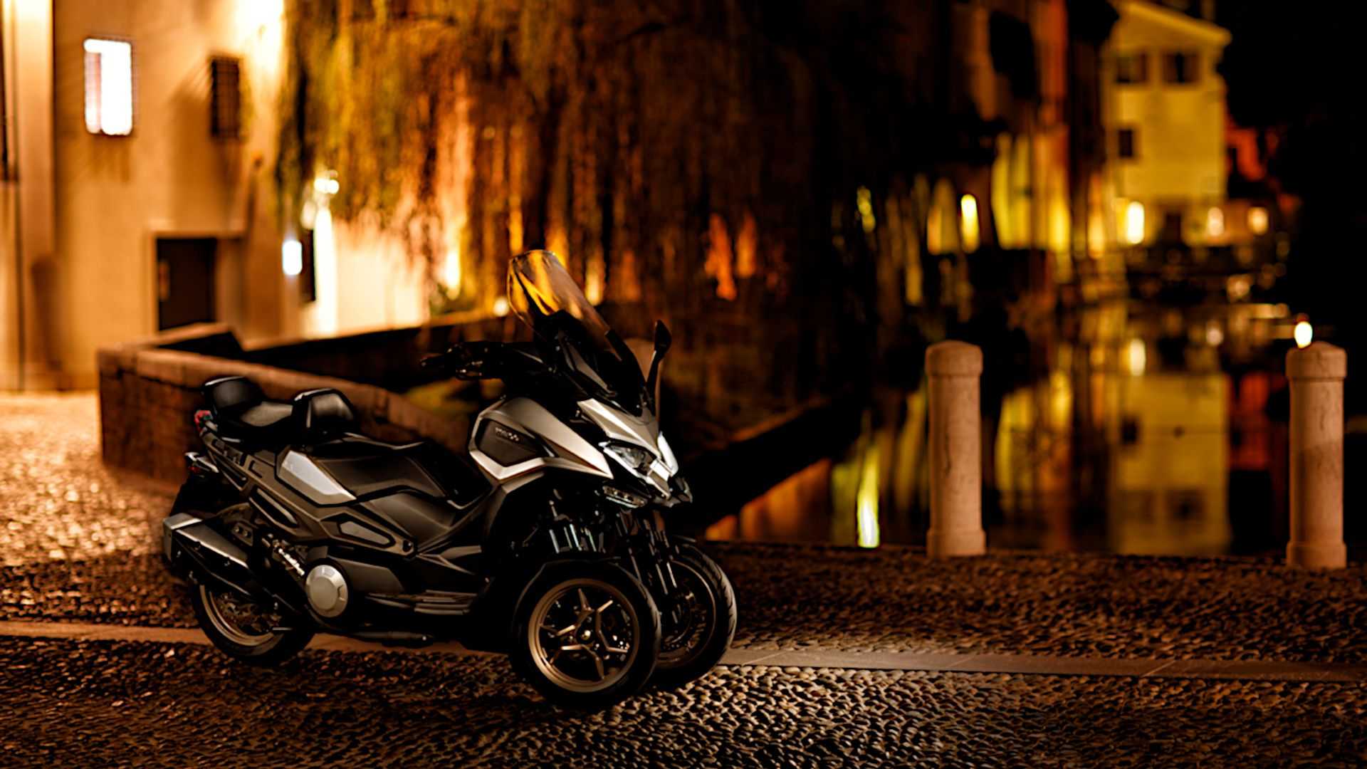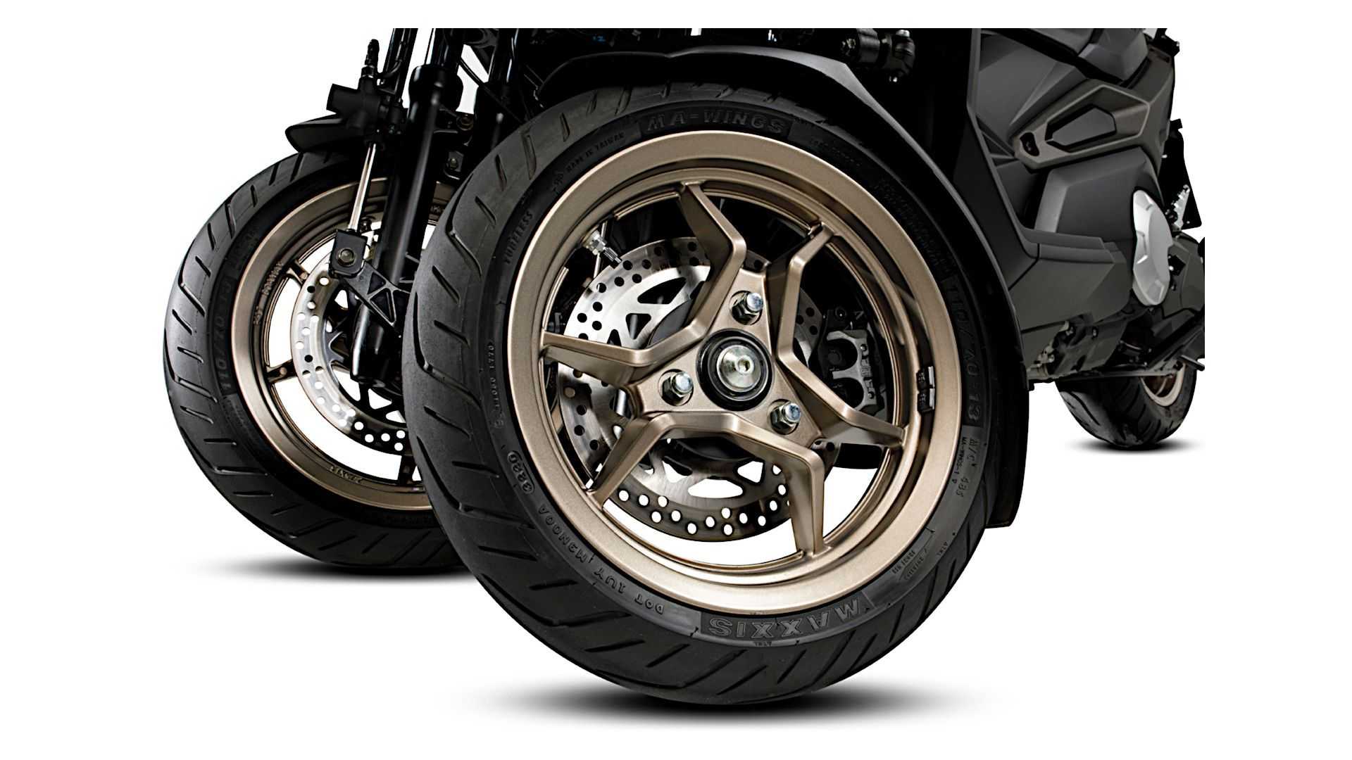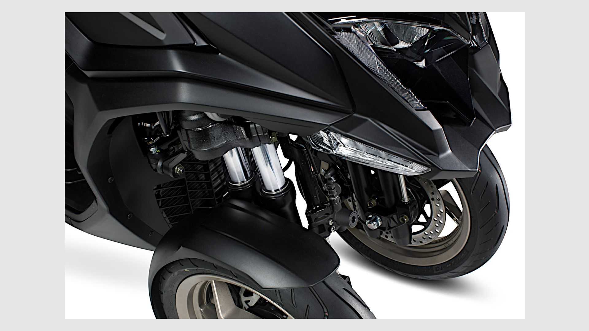 Dengan berat 280kg, skuter tiga roda itu menggunakan fork terbalik (USD) yang dipadankan rim aloi 13 inci di depan dan 15 inci di belakang. Sistem henti menggunakan dua brek cakera untuk setiap roda depan, dan cakera tunggal di belakang.