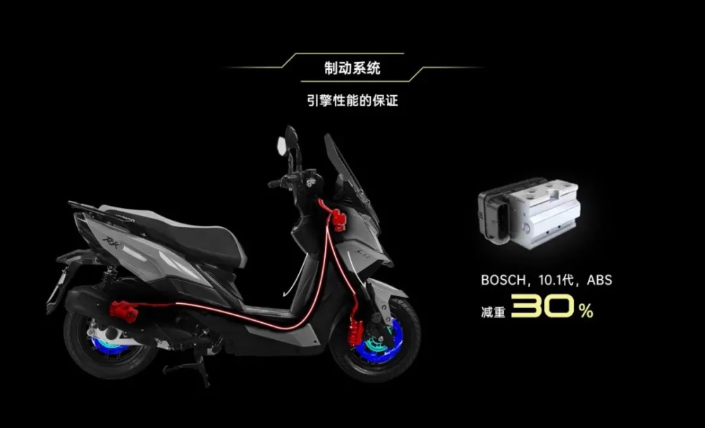 - Bahagian roda menggunakan sistem brek cakera depan dan belakang serta dipadankan Sistem Brek Anti-Kunci (ABS) dwi-saluran Bosch di depan.