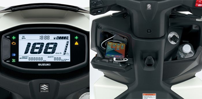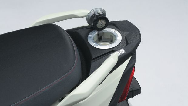 - Ruang simpanan bawah pelana 21.8 liter yang mampu memuatkan satu helmet dan barangan peribadi lain. Juga ada ruang storan tambahan 1 liter dan 1.6 liter di depan.