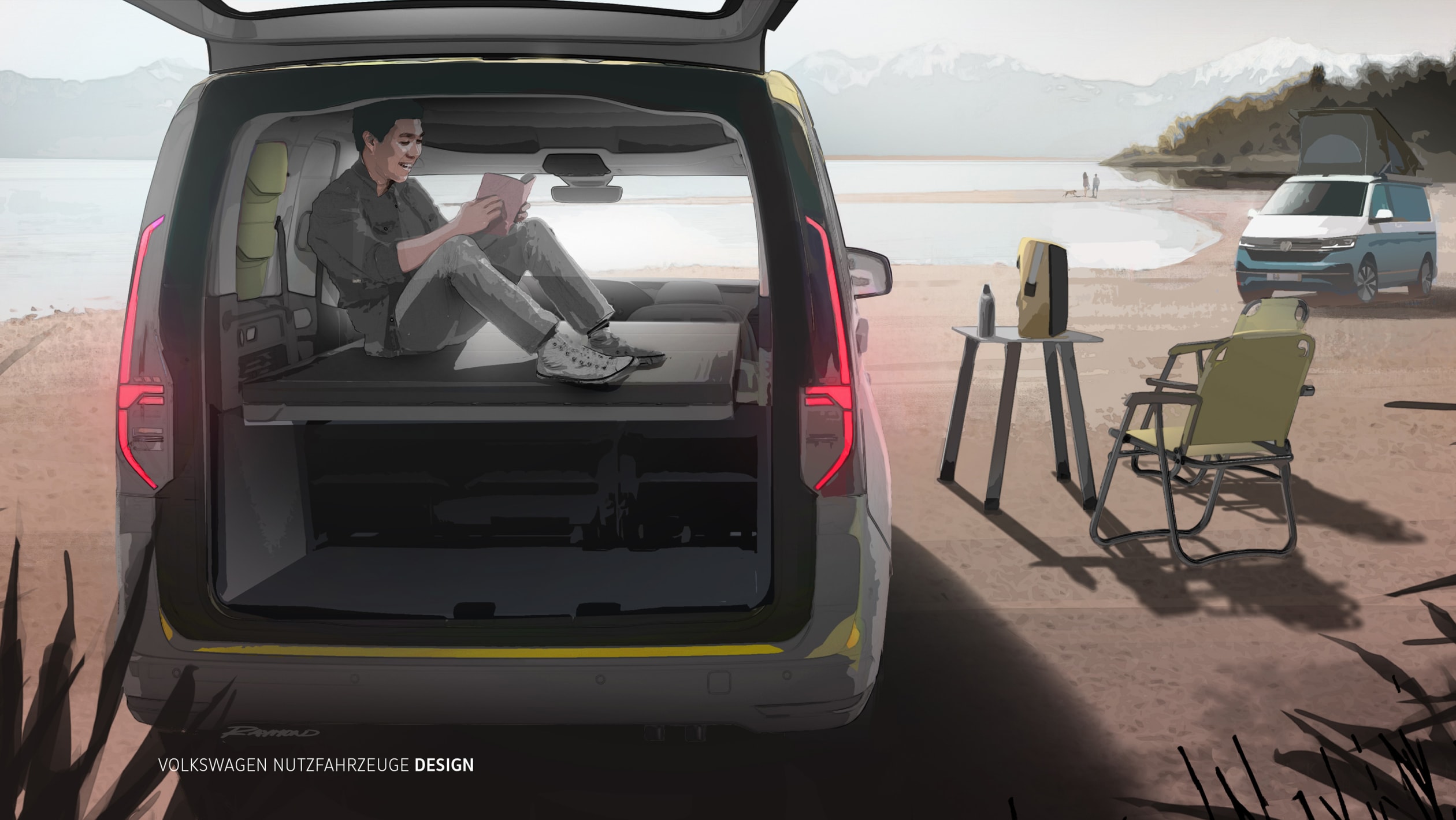 Lakaran konsep ini adalah penampilan rasmi pertama Volkswagen Caddy Mini-Camper baharu. Pengganti kepada Caddy Beach lama ini menampilkan kemas kini kemudahan dan kelengkapan tambahan. Van kamper itu dijangka membuat debut pada September nanti sebelum mula dijual akhir tahun ini.