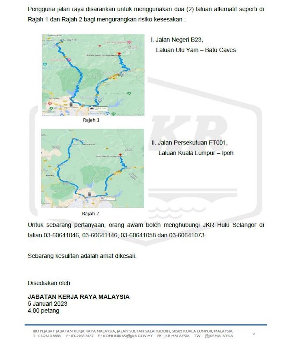 Orang awam juga boleh menghubungi JKR Hulu Selangor untuk sebarang pertanyaan di talian:
