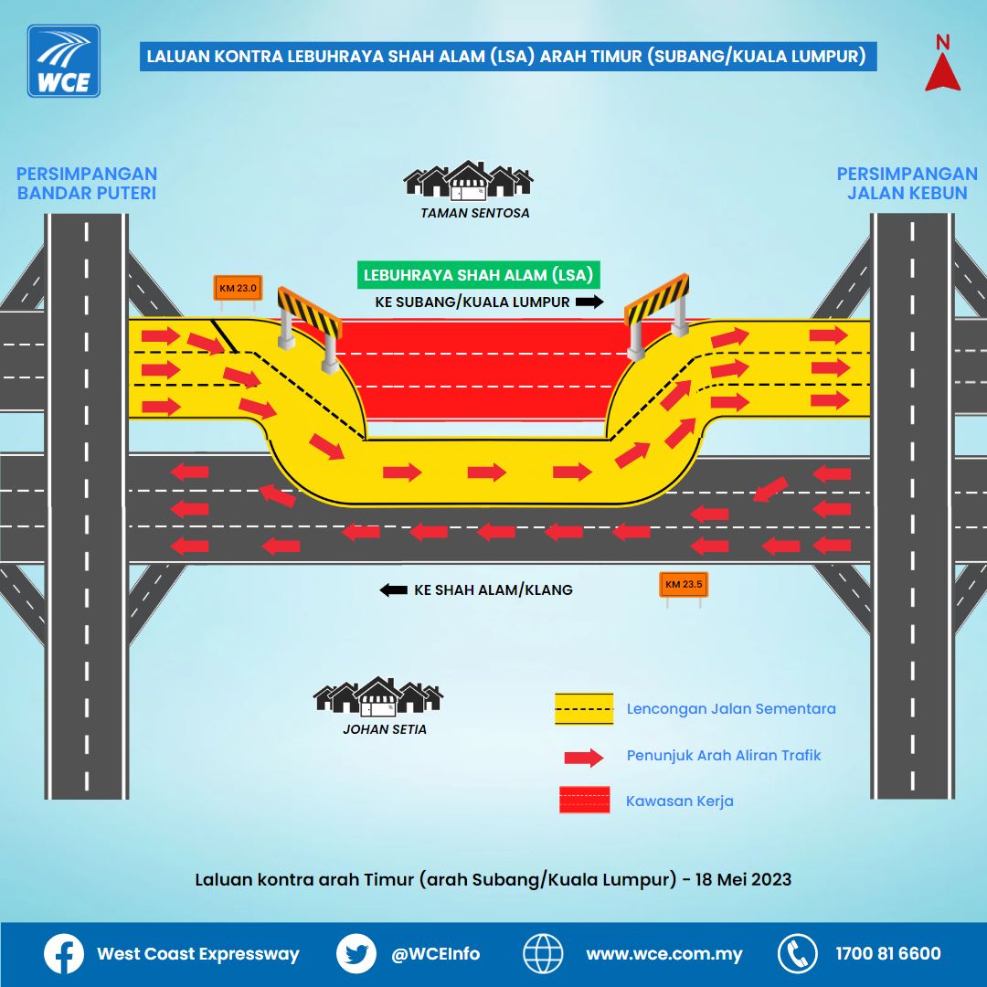 - 21 Mei 2023: Laluan kontra arah Barat (arah Shah Alam/Klang)