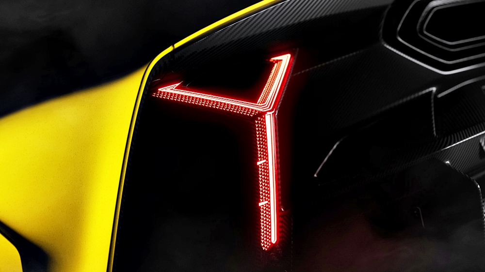 - Belakang Sayap menyambung ke gerbang roda, lampu belakang vertikal bentuk-Y, difuser karbon dan terminal ekzos heksagon