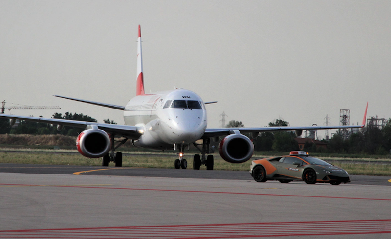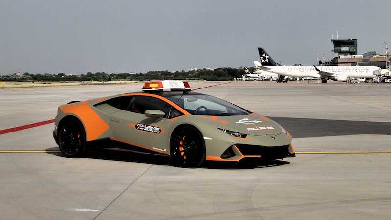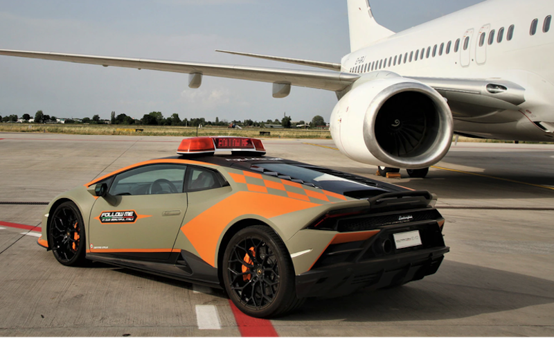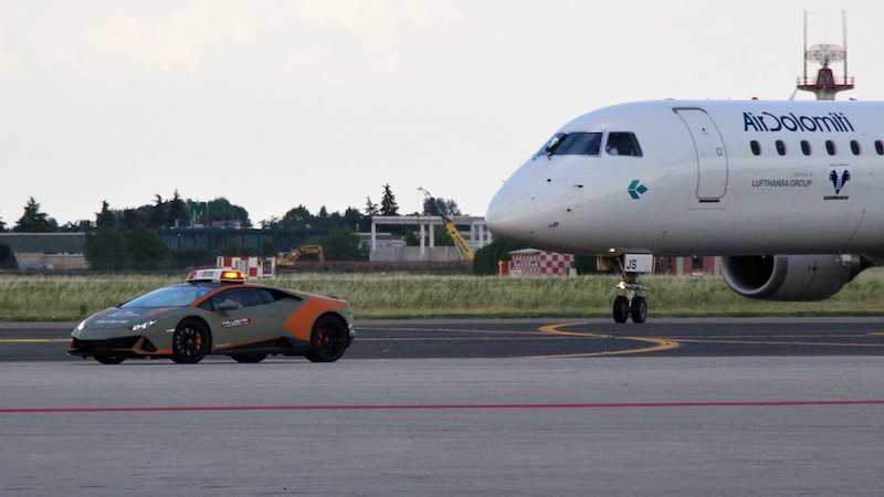 Lapangan Terbang Bologna Guglielmo Marconi terletak beberapa kilometer dari syarikat Lamborghini dan Muzium Lamborghini. Berikut perincian kereta follow-me berkenaan:
