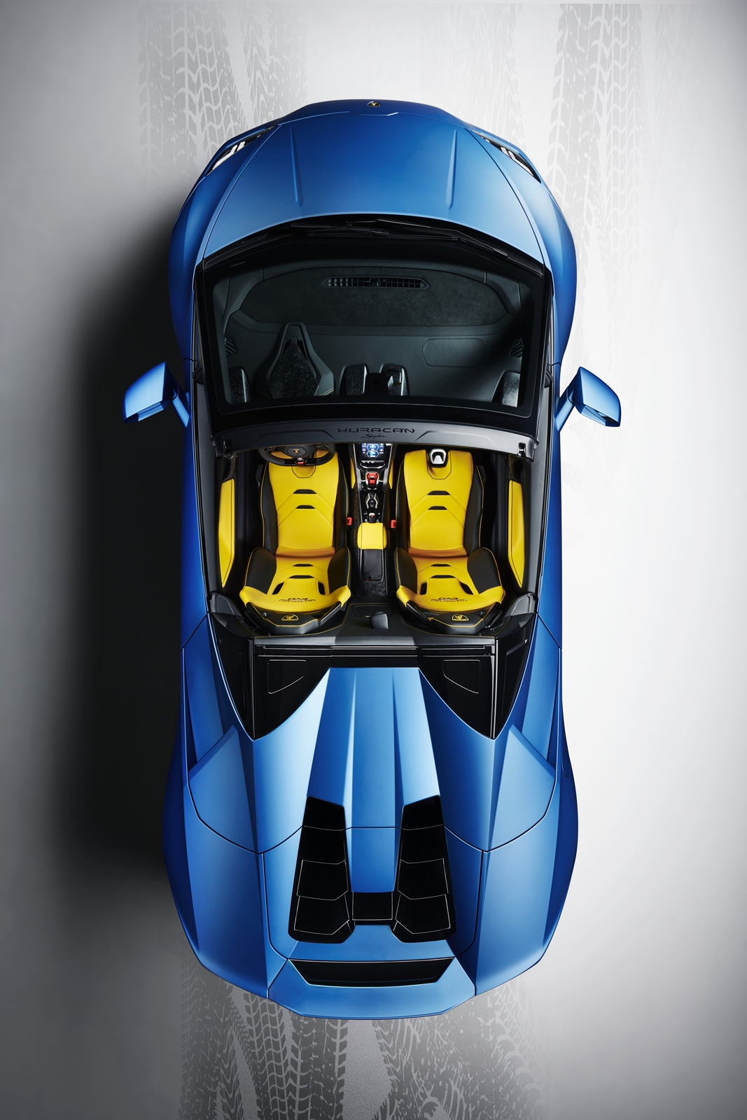 Badan Huracan EVO RWD Spyder dibuat daripada aluminium dan resin termoplastik atas casis ringan campuran (hibrid) aluminium dan gentian karbon. Berat kering kereta hanya 1,509kg, manakala nisbah kuasa (hp) kepada berat (kg) ialah 1hp:2.47kg. Nisbah pembahagian berat pula pada kadar 40:60.