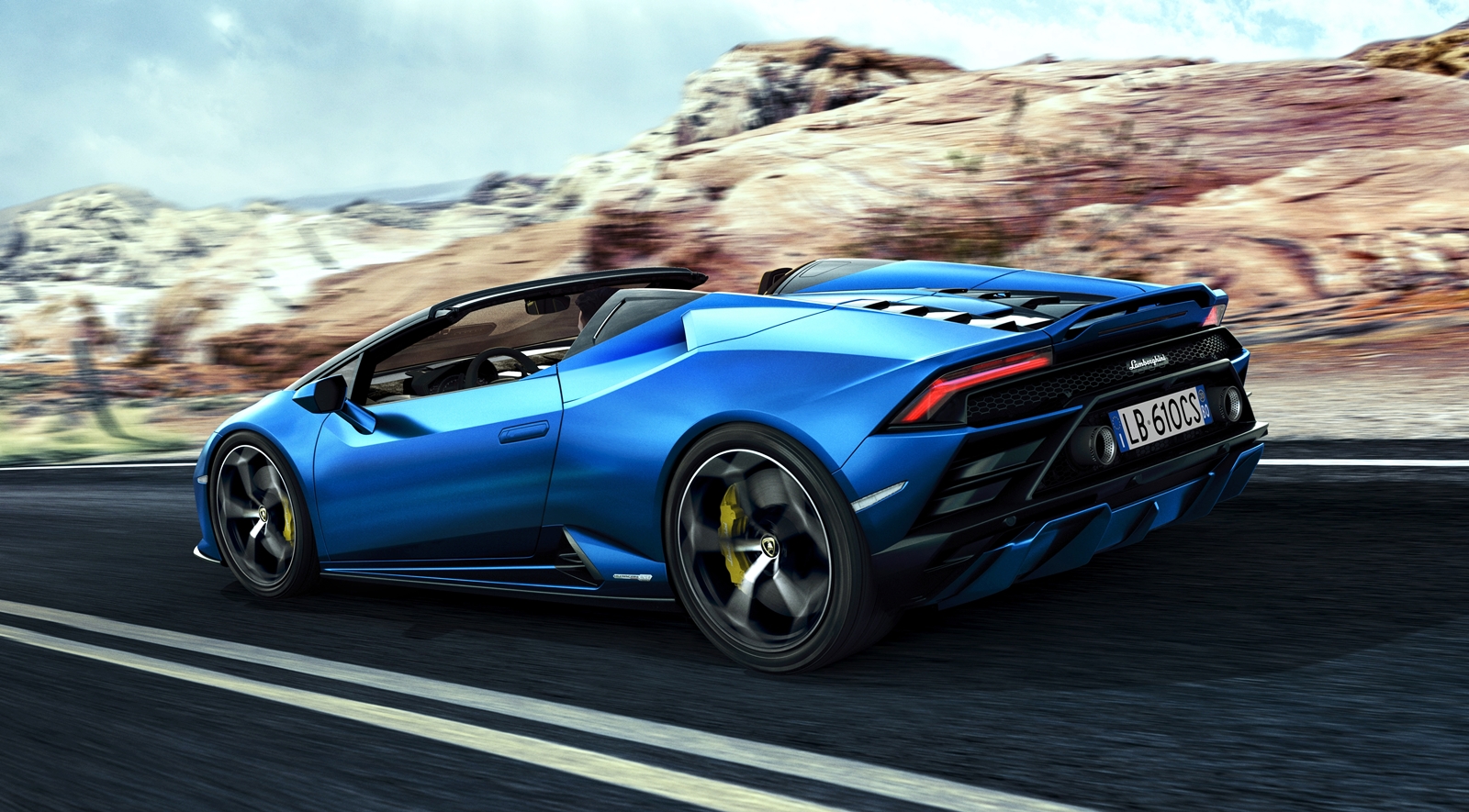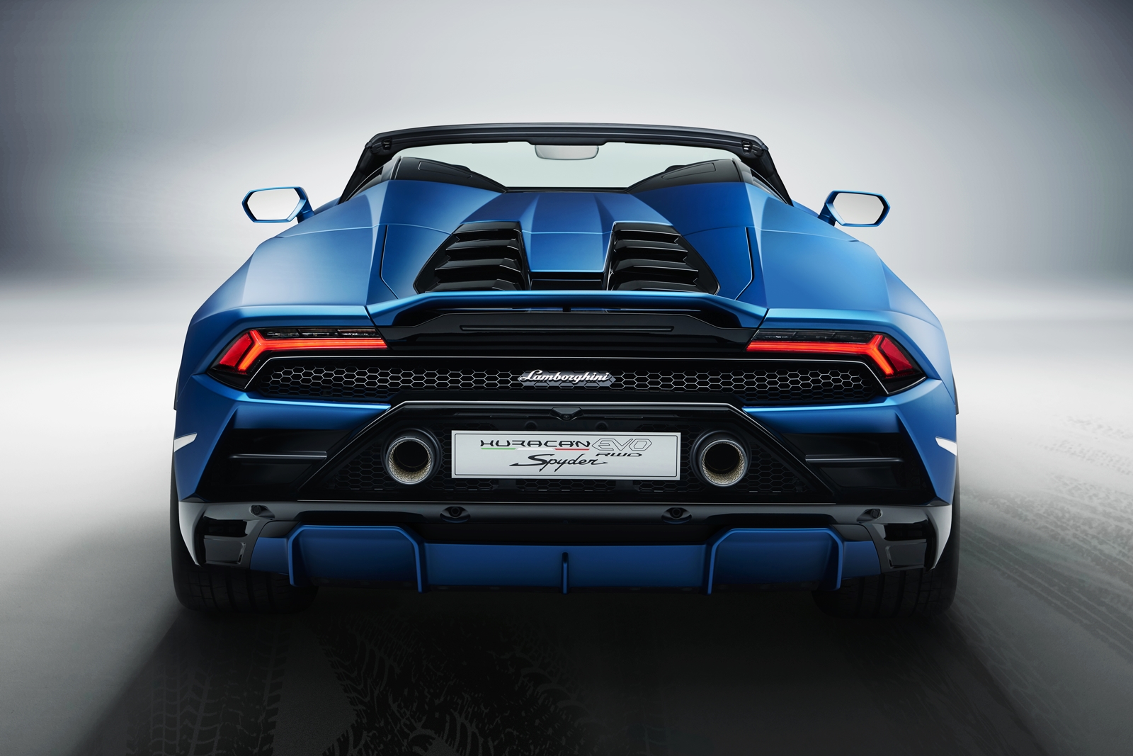 Huracan EVO RWD Spyder dipacu enjin 5.2L V10 membekalkan kuasa 610hp dan tork 560Nm, sama seperti versi coupé biasa, dan dipadankan transmisi dual-klac (DCT) LDF 7-kelajuan. Kuasa pecutan 0-100kmj hanya memerlukan 3.5 saat, manakala kelajuan maksimum mencapai angka 324kmj, sedikit perlahan berbanding 325kmj untuk model coupé (1kmj saja).