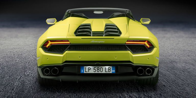 Desain depan dan belakang Huracan RWD Spyder direka semula supaya tampil berbeza dengan berat keseluruhan 1,467kg, iaitu 33kg lebih ringan berbanding Huracan Spyder. Kesimpulannya, jika versi RWD ialah Huracan terbaik untuk dipandu, varian Spyder pula adalah Huracan terbaik untuk dimuatkan dengan RWD. Hasilnya, pemanduan menyeronokkan dalam gaya sempurna!