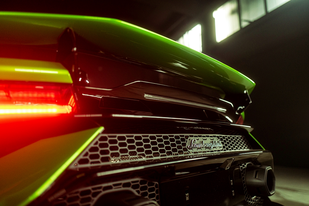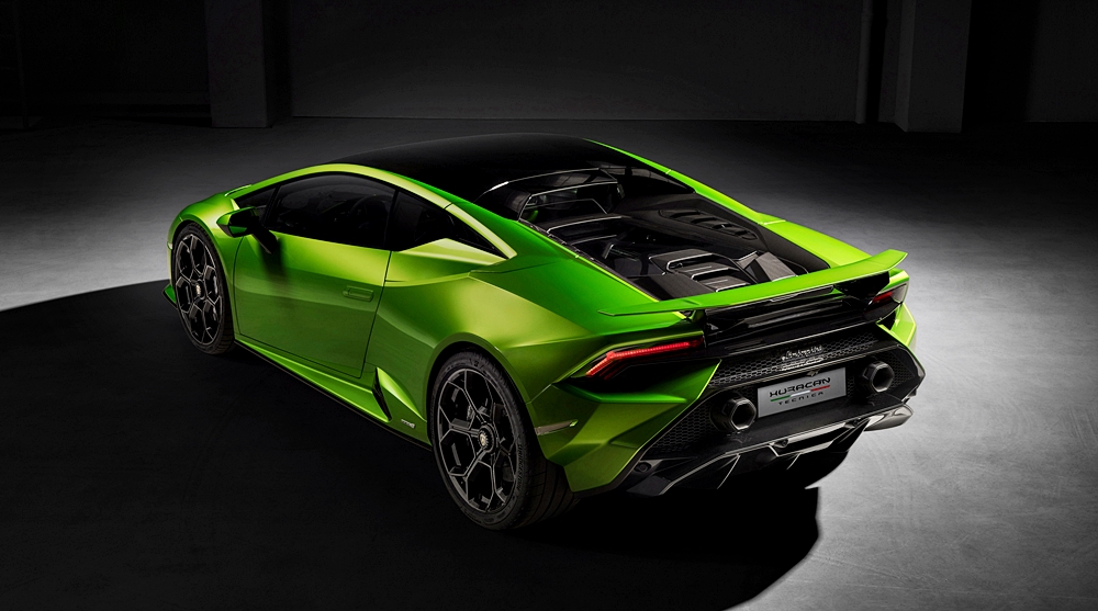 - Sayap belakang dengan rekaan aerodinamik yang menyumbang kepada 35 peratus lebih daya mendap belakang berbanding Huracán EVO RWD.