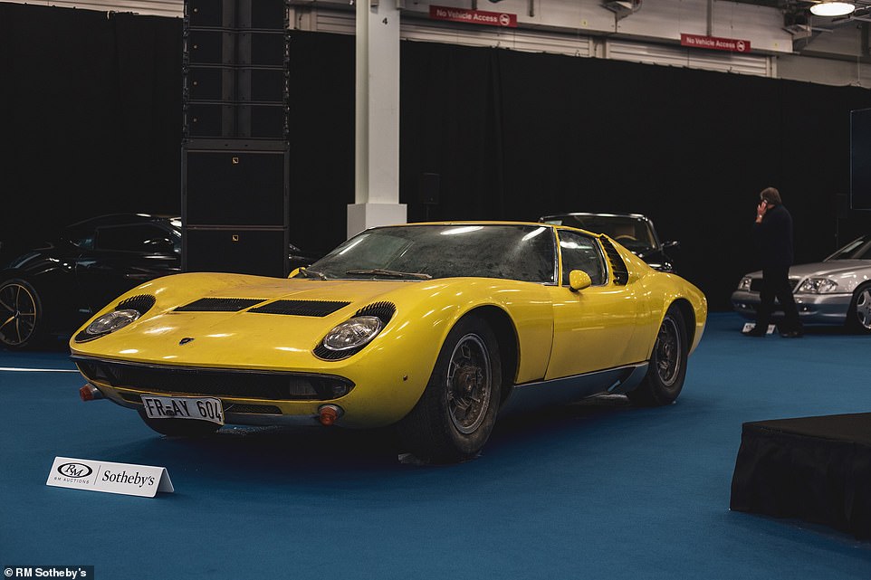 LAMBORGHINI Miura P400 S kuning yang ditemui di sebuah bangsal di Jerman dijual pada harga £1.25 juta (RM6.6 juta) pada sesi lelongan di London, Britain.