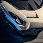 - Spliter depan dan diapit dua sirip dan saluran masukan udara pada bonet depan yang dipengaruhi Huracán GT3 EVO.