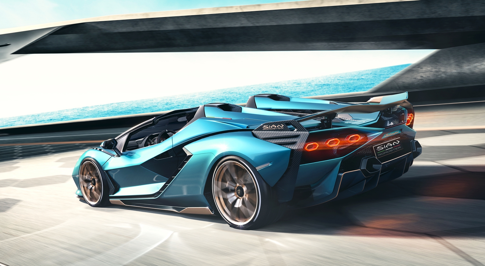 Seperti model terdahulu, Sián Roadster membawa pengaruh Countach melalui garisan periscopio di atas dengan bentuk serong dari kokpit hingga belakang kereta.