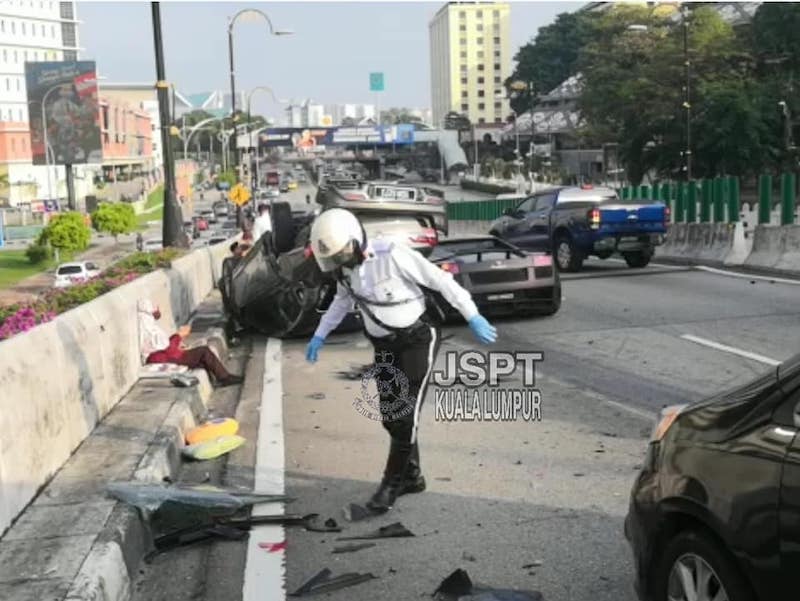 SEBUAH Lamborghini jenis Superleggera dipercayai hilang kawalan sebelum merempuh beberapa kenderaan lain di Jalan Tun Razak menghala ke Bulatan Pahang di Kuala Lumpur, pagi tadi.