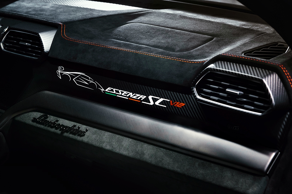 Lamborghini Essenza SCV12 diperkenalkan pada Julai 2020 dengan spesifikasi istimewa untuk pemanduan trek sahaja, atau bermaksud tidak sah digunakan di jalan raya awam.