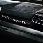 Ruang kabin dibalut kemasan Alcantara Nero Cosmus (hitam), aksen gentian karbon (hitam kilat atau kusam), aluminium hitam dan Dark Package kecuali hendal pintu merah.