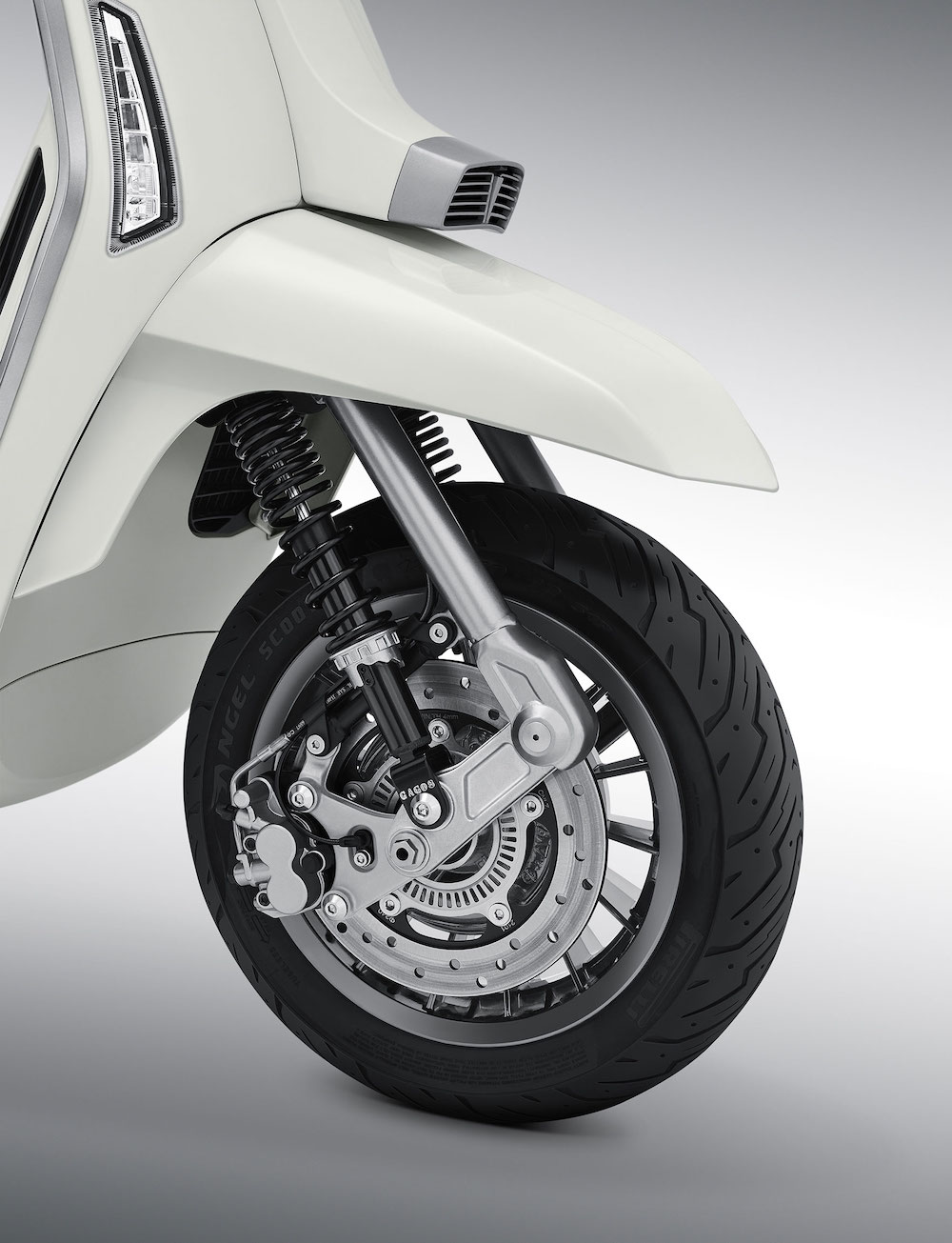- Rim 12 inci dibalut tayar Pirelli bersaiz 120/70 (depan) dan 130/70 (belakang).