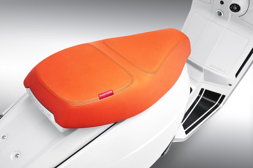 - Lampu LED penuh dengan perumah lampu utama berbentuk heksagon. Lampu brek LED belakang ada paparan logo Lambretta.