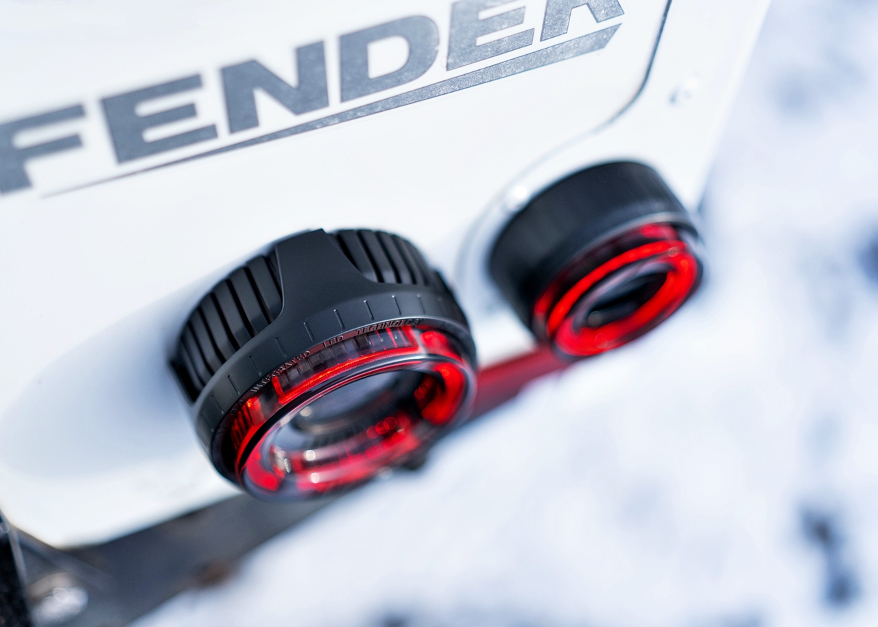 - Nyalaan sekuensial atau Dynamic Start-up Display (DSD) berfungsi ketika Defender dihidupkan dengan nyalaan kecil hingga separa dan berlanjutan hingga siap melalui 24 diod lampu.