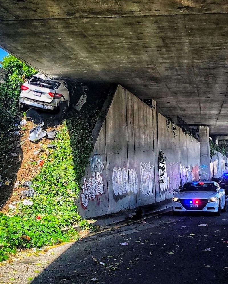 Oakland CHP berkongsi gambar di Instagram menunjukkan kemalangan ngeri yang berlaku pada 12 April lalu dan menyifatkan suspek tersebut bertuah kerana masih hidup.