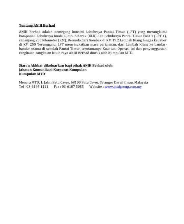 ANIH turut meminta semua pengguna mematuhi arahan dikeluarkan pihak berkuasa. Pengendali itu juga kini dalam keadaan siap siaga bagi menghadapi sebarang kemungkinan.