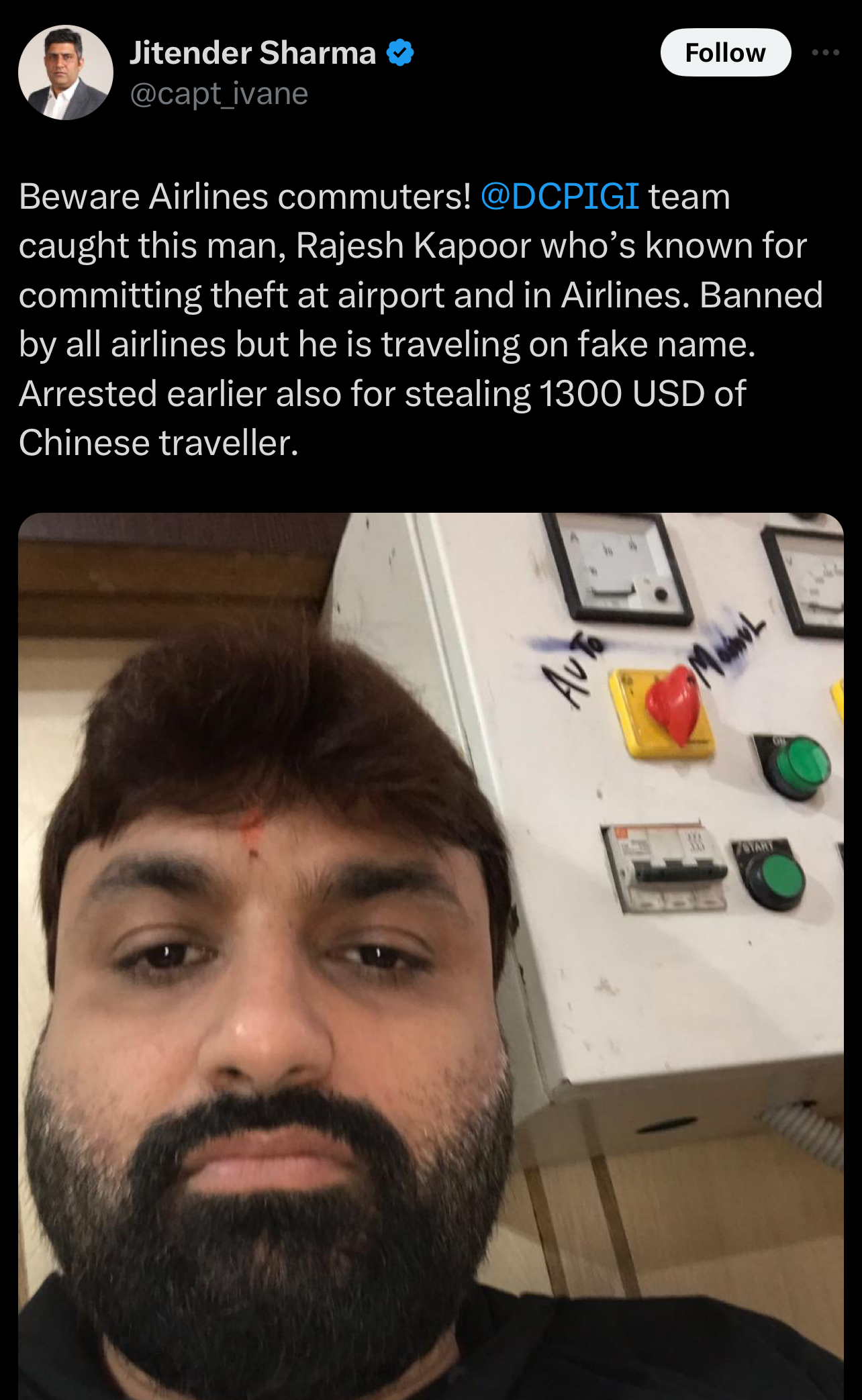Suspek, Rajesh Kapoor, 40, pernah terlibat dalam kes kecurian di kereta api sebelum melakukan jenayah sama dalam pesawat penerbangan pula.