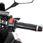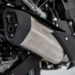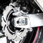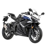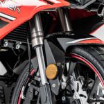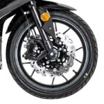- Tinggi pelana 820mm disertakan bersama kit khas untuk melaraskan ketinggian. Saiz rim 17 inci, dibalut tayar 110/70-17 di depan dan 150/70-17 di belakang.