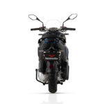 Skuter itu hadir dengan gaya badan maskular dari depan ke belakang, dan ditambah mufler ekzos besar serta rim 13 inci dengan profil tayar blok.