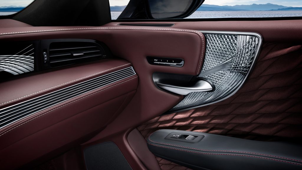 Ketika membangunkan susunan kaca ukir bertindih itu, pasukan pereka Lexus terlebih dahulu menganalisis pantulan cahaya apabila pintu ditutup dan dibuka. Proses gilapan pula dibuat secara berhati-hati dengan mengambil masa lebih kurang sejam bagi setiap kepingan kaca depan, manakala kaca belakang perlu digilap selama dua jam!