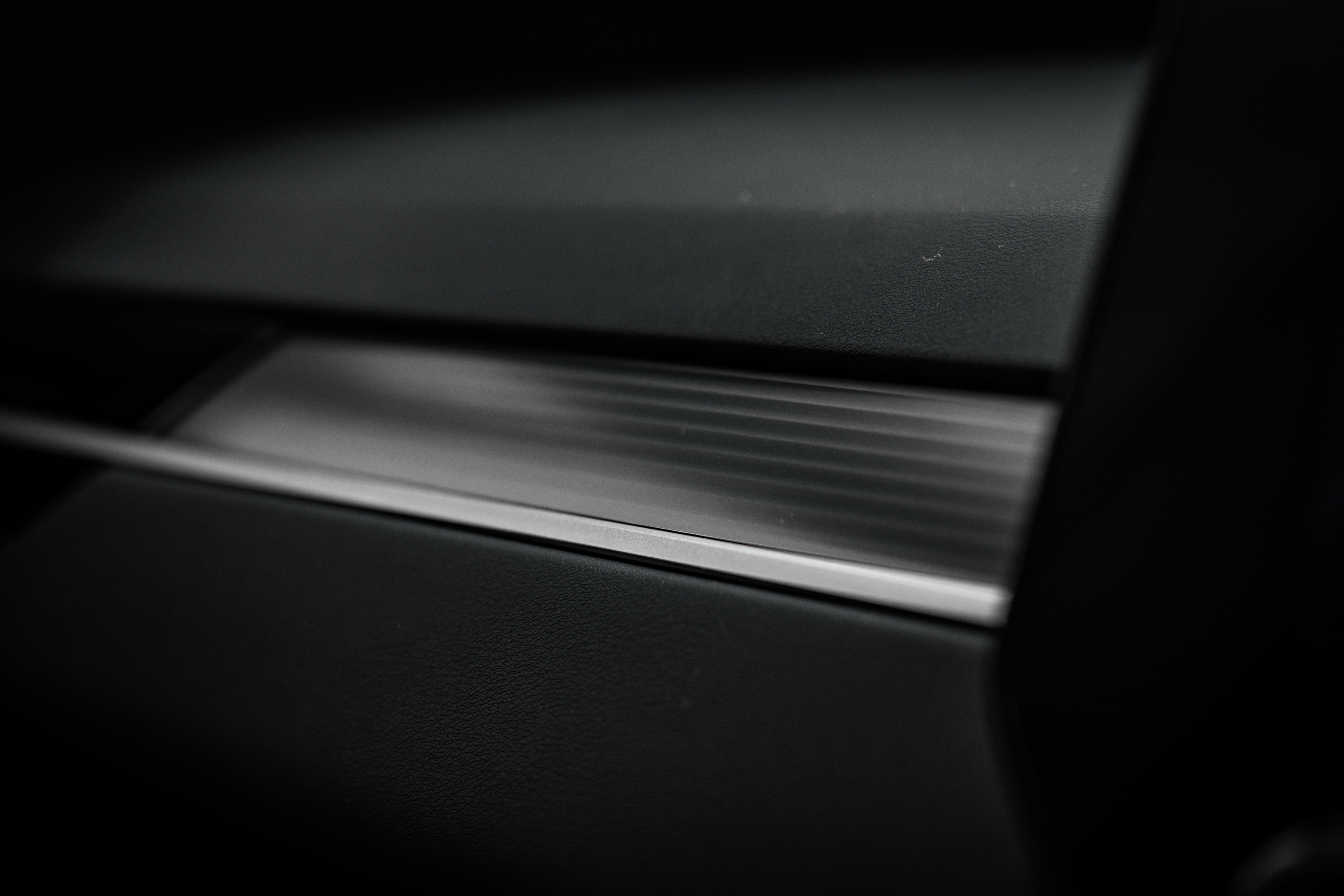 - Ruangan serba gelap diselubungi rona hitam, termasuk papan pemuka, kerusi, bumbung kabin dan karpet lantai.