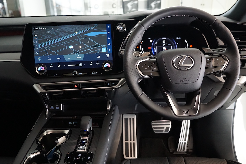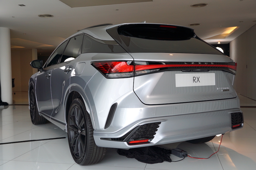 - Lexus RX 500h F Sport (2023) menggunakan trenkuasa hibrid baharu, iaitu enjin dengan pengecas turbo yang dipadankan motor elektrik.