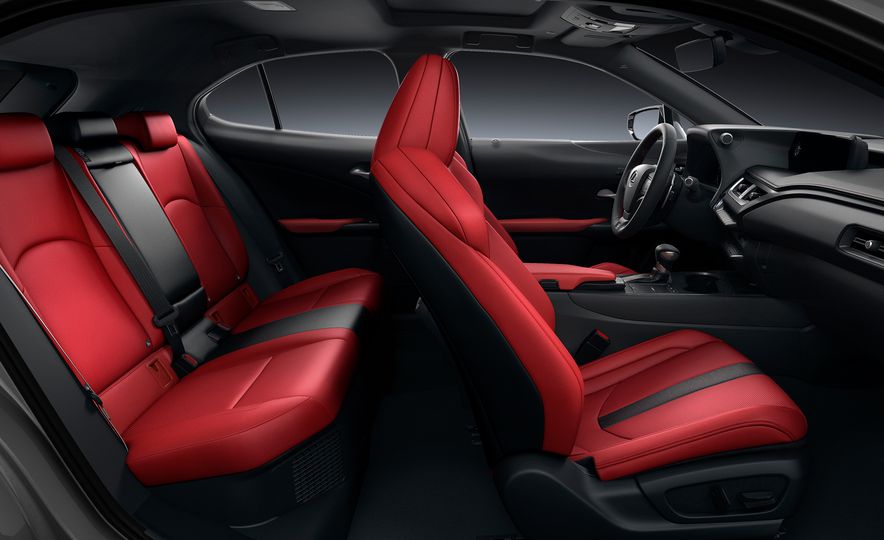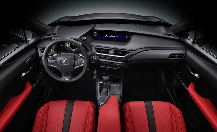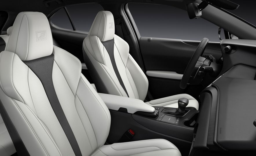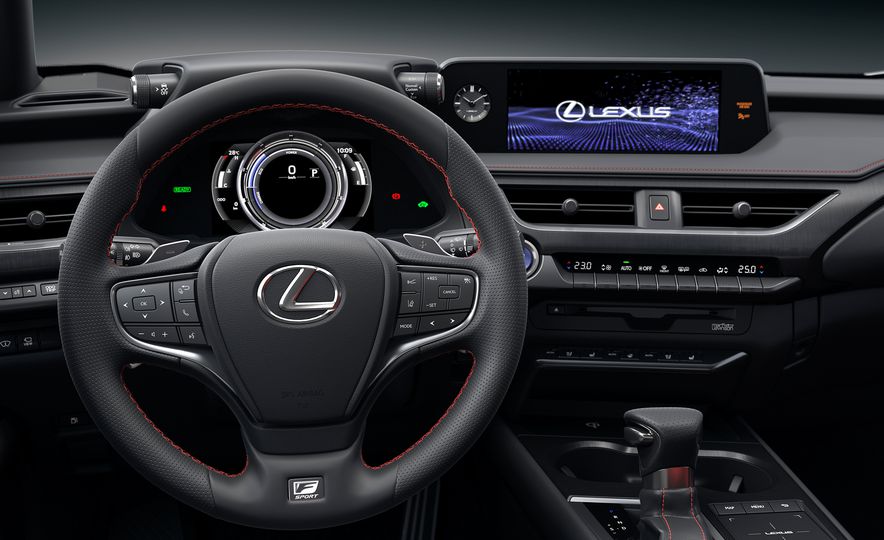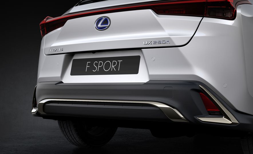 Kedua-dua varian, UX200 dan UX250h ditawarkan opsyen pakej ‘F Sport’ dengan tambahan rekaan gril eksklusif, kemasan depan dan belakang hitam, rekabentuk bampar belakang sedikit berbeza dan rim aloi 18 inci. Ruang dalaman F Sport dihidangkan kluster meter ilham supercar LFA, roda stereng kulit dan selektor gear, pedal sport aluminium dan skrin sentuh LCD 8 inci (bukan F Sport, 7 inci).