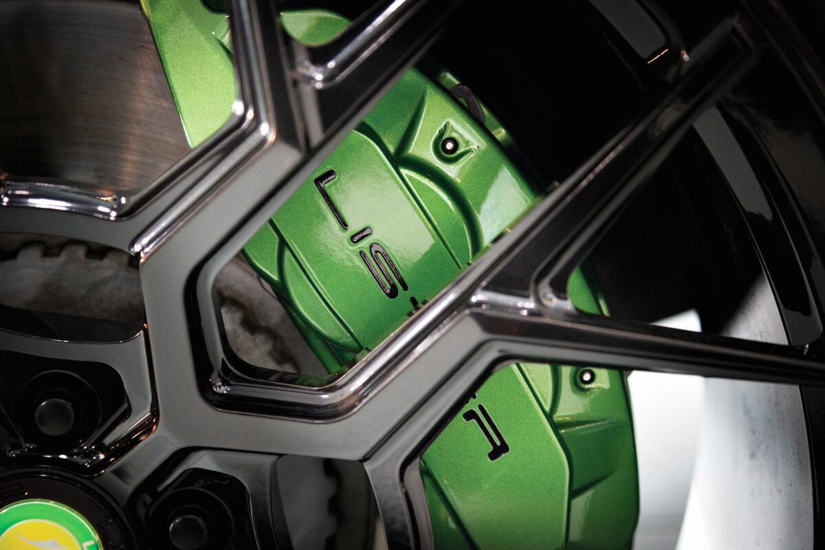 Difuser gentian karbon besar di belakang terletak di tengah bampar untuk menghasilkan tambahan daya mendap (downforce) seiring dengan spliter depan. Bahagian tepi selain skirt sisi ialah gerbang roda lebar dan rim tempa Vossen 23 inci direka Lister, iaitu satu-satunya komponen Stealth yang tidak dibuat di Britain.