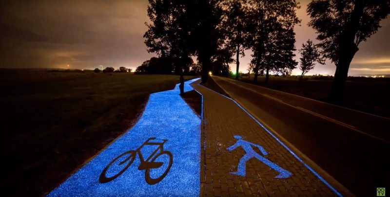 Lorong basikal berkuasa solar dan mampu bercahaya dalam gelap itu kini sedang diuji dekat bandar Lidzbark Warminski di utara Poland. Material sintetik itu, yang dibangunkan firma kejuruteraan, TPA Instytut Badań Technicznych Sp. z o.o. (TPA), dikatakan mampu menyediakan tempoh pencahayaan sehingga 10 jam apabila dicaj penuh.