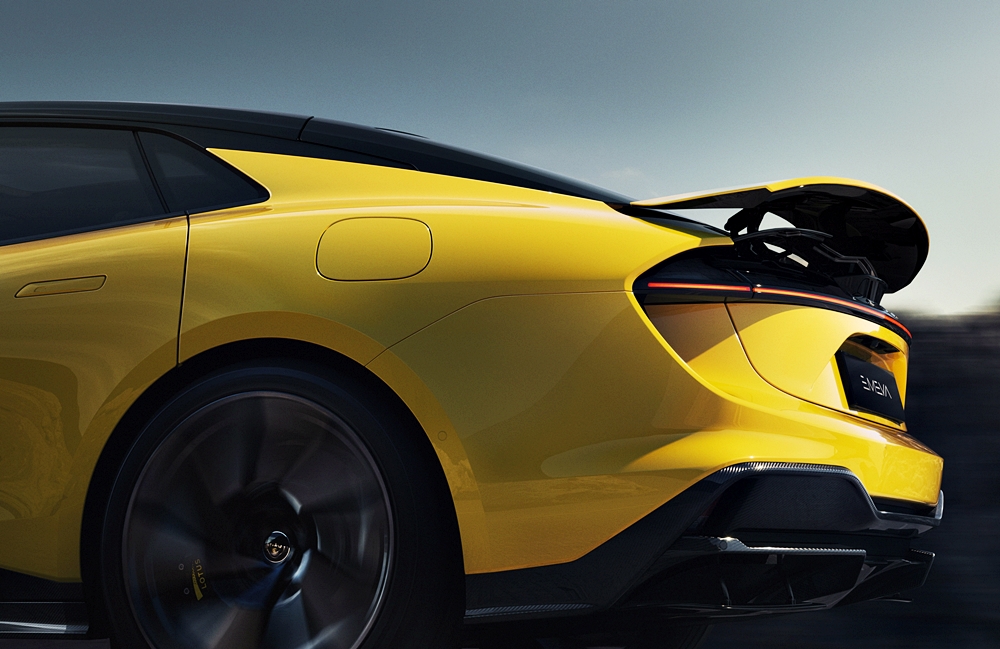Menjadikan kereta stabil ketika memecut ialah ciri aerodinamik aktif seperti gril depan, difuser dan spoiler belakang. Spoiler dua lapis mempunyai lebar 296 mm atau tambahan 100mm daripada Eletre dengan daya mendap lebih 215kg.