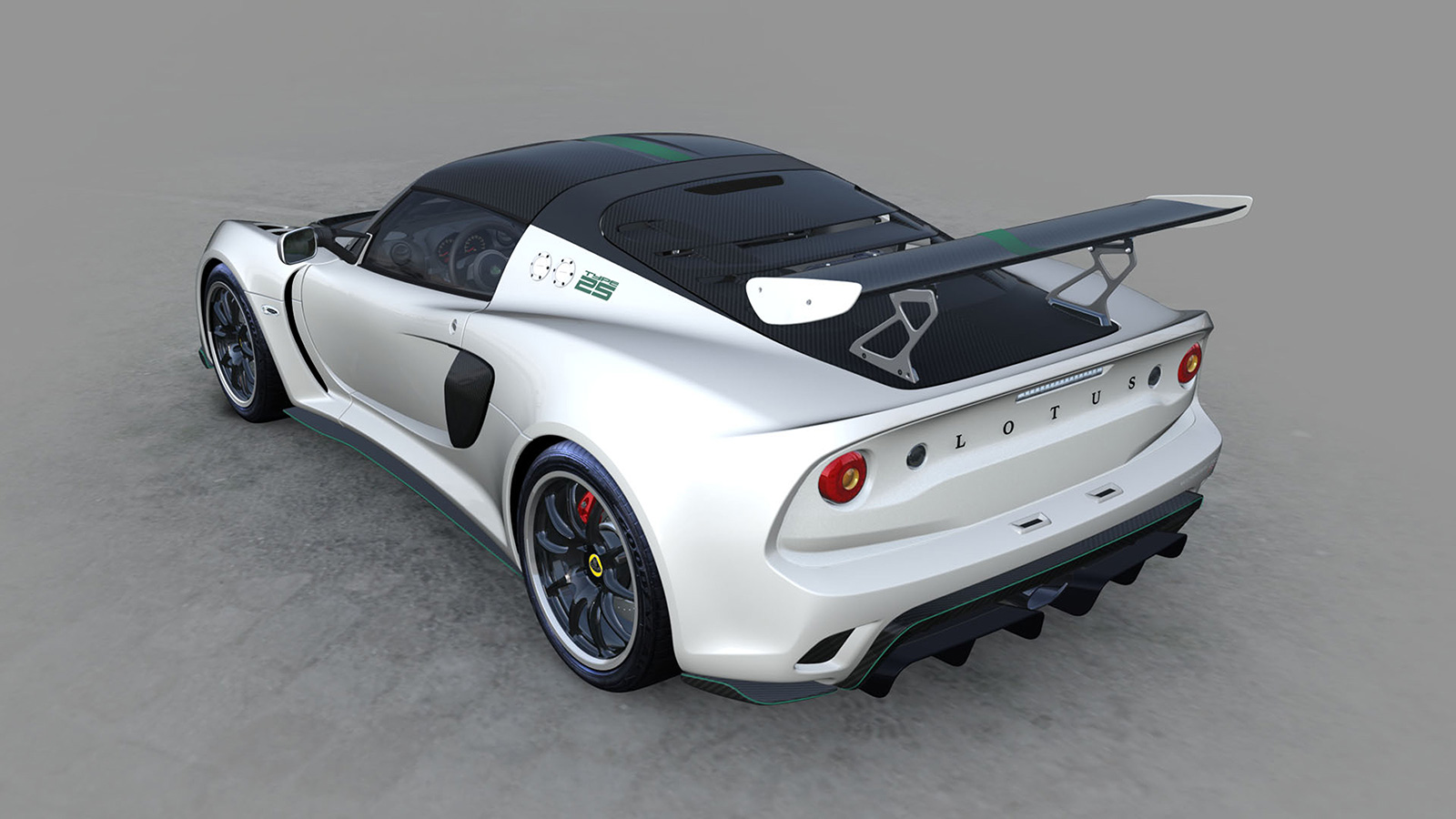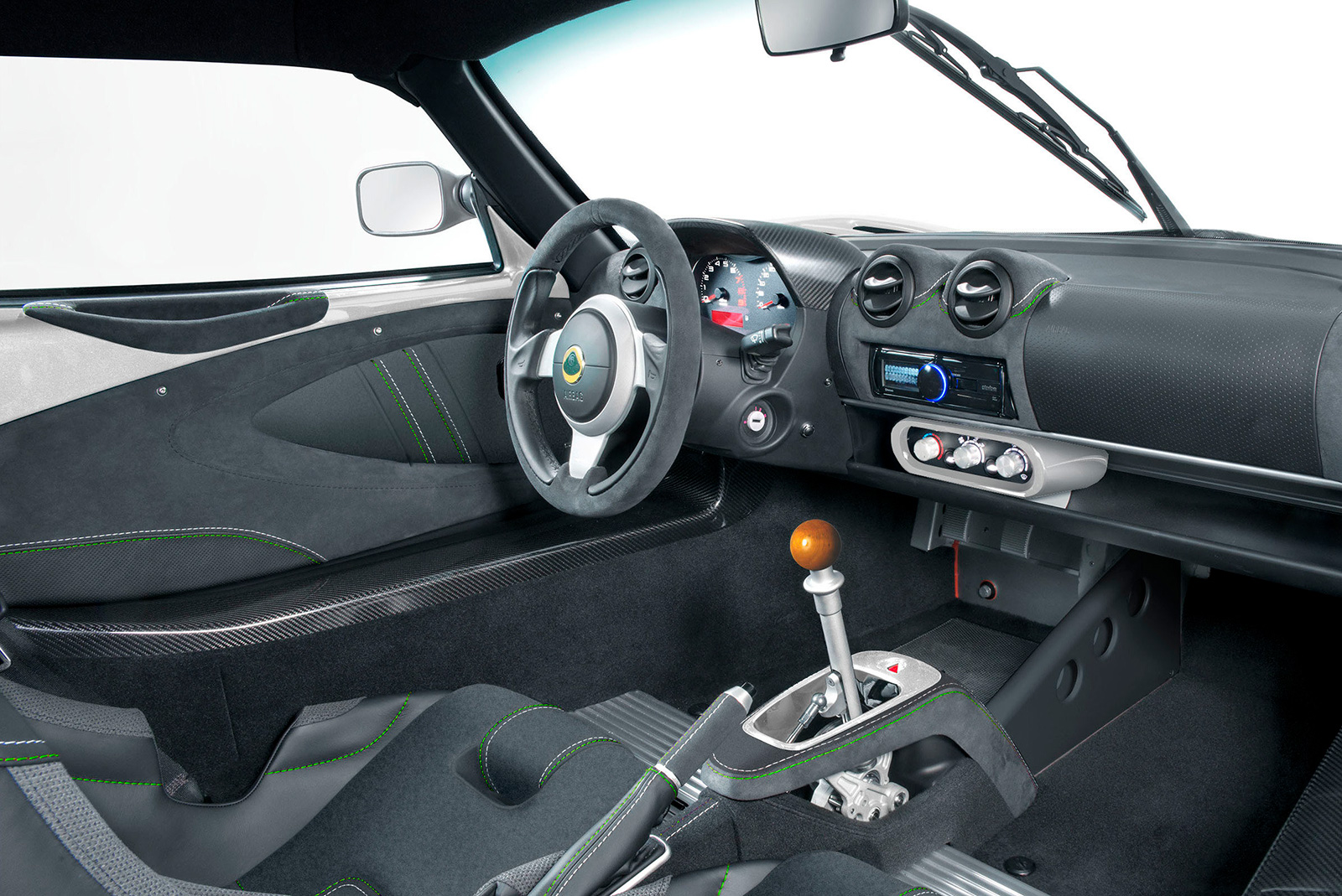 Dua kerusi sport lumba gentian karbon dikemaskan dengan trim Alcantara hitam. Selain itu, tombol gear kayu masih digunakan sebagai penghormatan kepada kereta lumba Formula 1, Lotus Type 25.