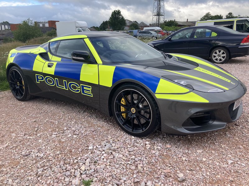 Terbaharu, Lotus berbesar hati meminjamkan seunit Evora GT410 Sport yang siap diberikan seragam polis selama setahun kepada unit peronda Polis Devon dan Cornwall.