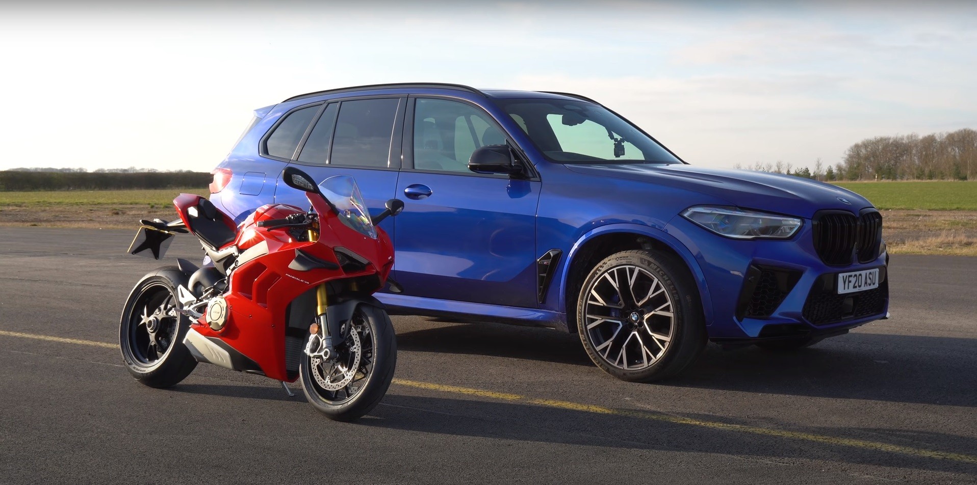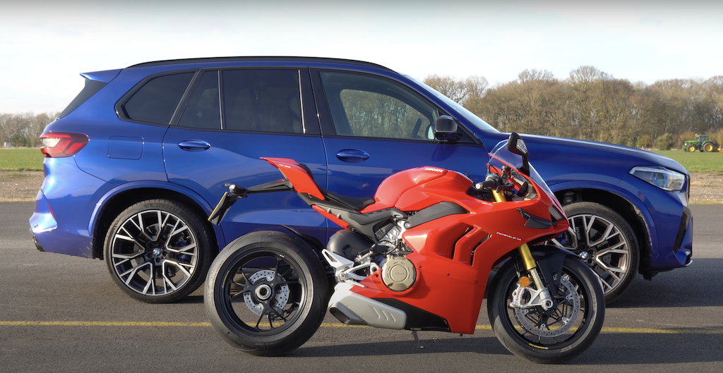 Atas kertas, perlumbaan itu sudah nampak sangat berat sebelah. Tidak mungkinlah sebuah SAV berat mampu mengalahkan superbike premium Ducati? X5 M Competition dijana enjin V8 4.4L Twin-Turbo berkuasa 617hp dan tork 760Nm. Ducati Panigale V4 S pula menggunakan enjin V4 1,103cc berkuasa 211hp dan tork 124Nm.