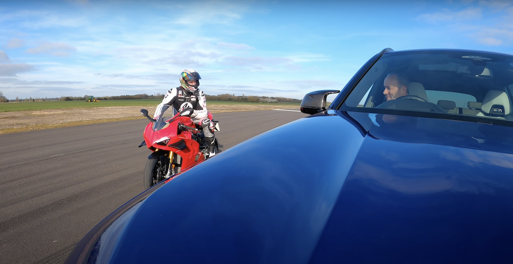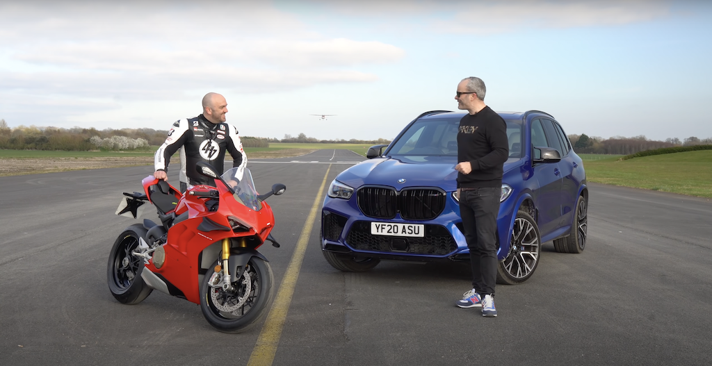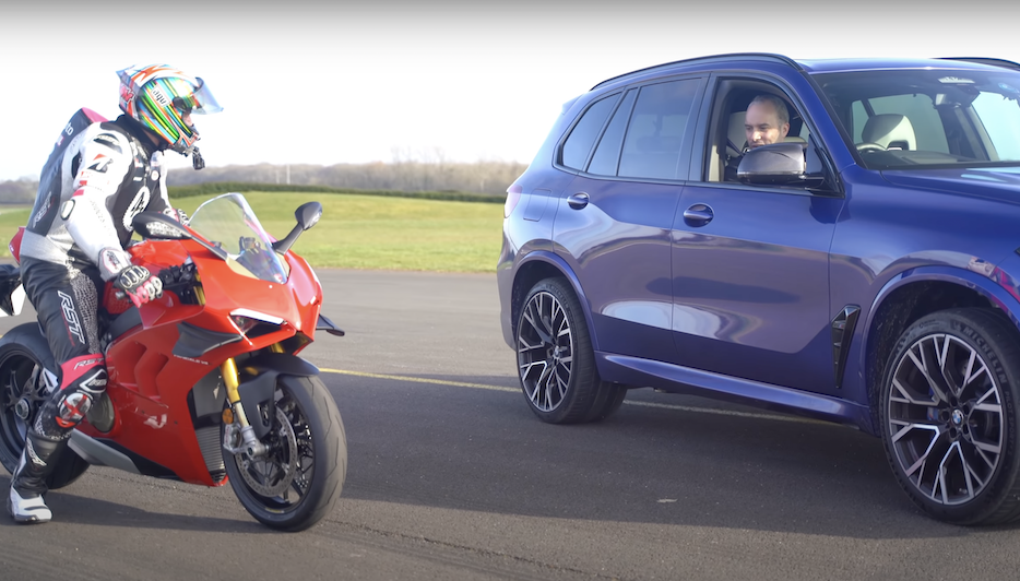Perlumbaan dilakukan beberapa kali dan ada satu perlumbaan X5 M Competition diberikan peluang bermula dulu dan dapat menewaskan Panigale. Begitulah jauhnya perbezaan antara kereta prestasi tinggi dengan superbike. Namun, pemilihan kereta yang lebih baik patut dilakukan supaya perbandingan lebih adil.
