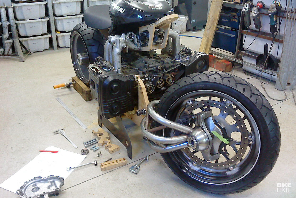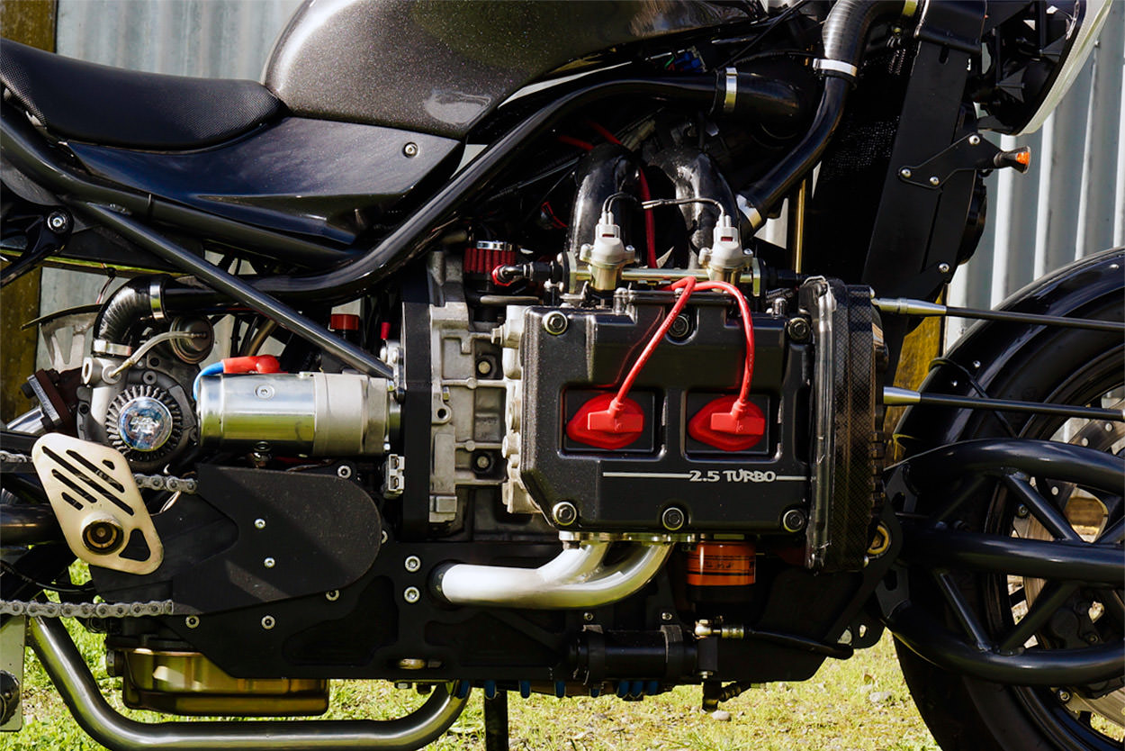Namun, semua itu bukanlah semudah dikata, kerana Van Hooijdonk terpaksa membuat banyak kali cubaan sebelum segalanya sempurna. Dia juga perlu membina sistem stereng yang memenuhi kelulusan panel persijilan LVVTA. Akhirnya motosikal tersebut perlahan-lahan menyerlahkan rupa tersendiri dengan tangki minyak Kawasaki, roda yang dibeli daripada TradeMe (portal e-dagang seakan eBay versi New Zealand), dan unit turbo-kembar kecil daripada Subaru Legacy bagi menggantikan turbo WRX yang besar.