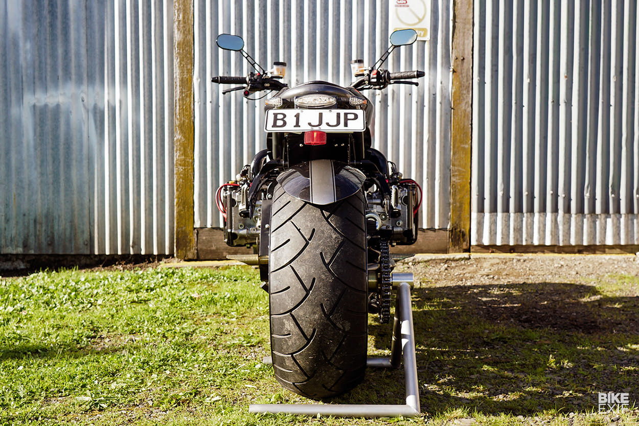 DALAM dunia custom, ada banyak cabaran perlu diatasi jika mahu membikin sebuah motosikal yang dikuasakan enjin kereta. Paling perlu dititik beratkan ialah aspek berat fizikal dan tork, tentang bagaimana mahu memuatkan sebuah enjin – yang relatifnya besar – pada frem sebuah motosikal versi pengeluaran.