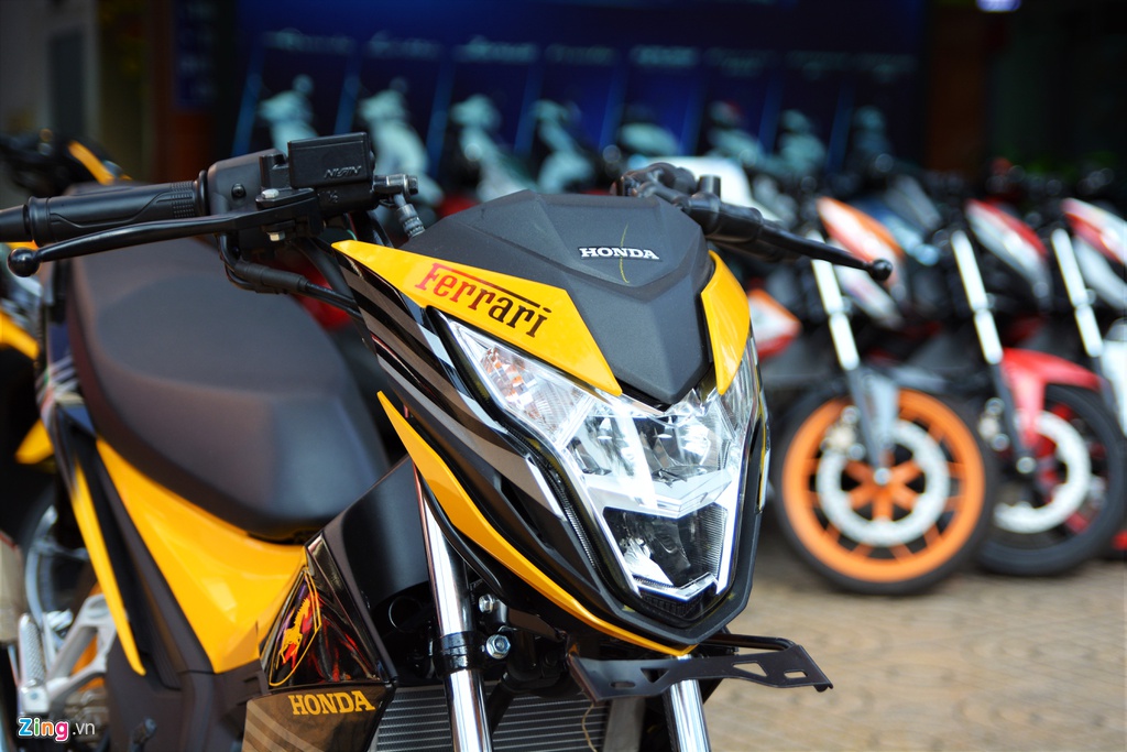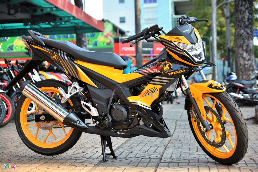 SEBUAH kedai motosikal di bandar Ho Chi Minh, Vietnam menawarkan Honda Sonic dengan kit badan Ferrari. Model kapcai tersebut menampilkan skema badan kuning-hitam dengan fairing dihiasi dekal Ferrari pada madgad, panel sisi, dan belakang.